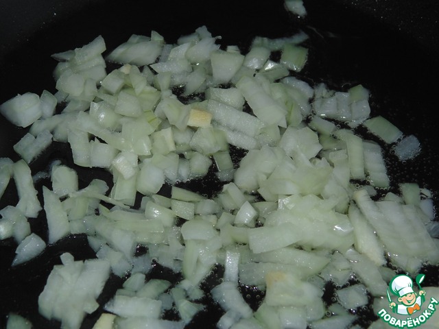 Репчатый лук мелко порезала и обжарила на растительном масле до золотистого цвета.