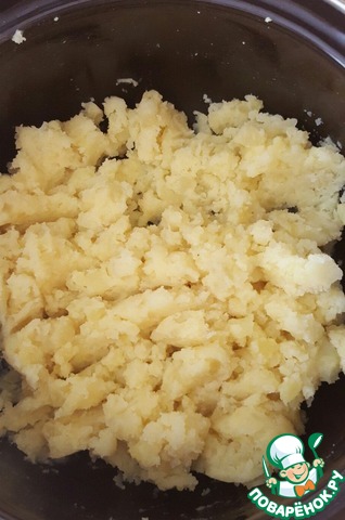 Картошку сварить, добавить сливочное масло, помять ее совсем немного. Не нужно взбивать как пюре, внутри будет как каша.