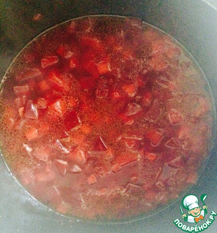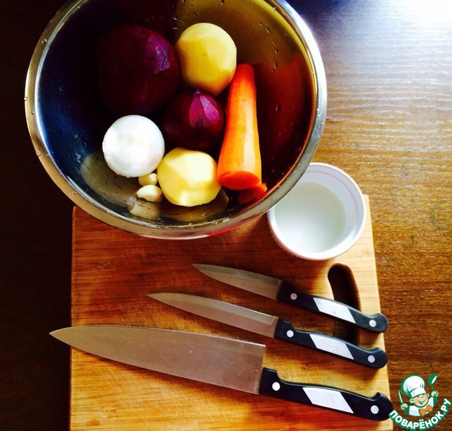 Прикройте крышкой и варите при слабом кипении до тех пор, пока свёкла и картофель не станут мягкими. (примерно 35 минут)