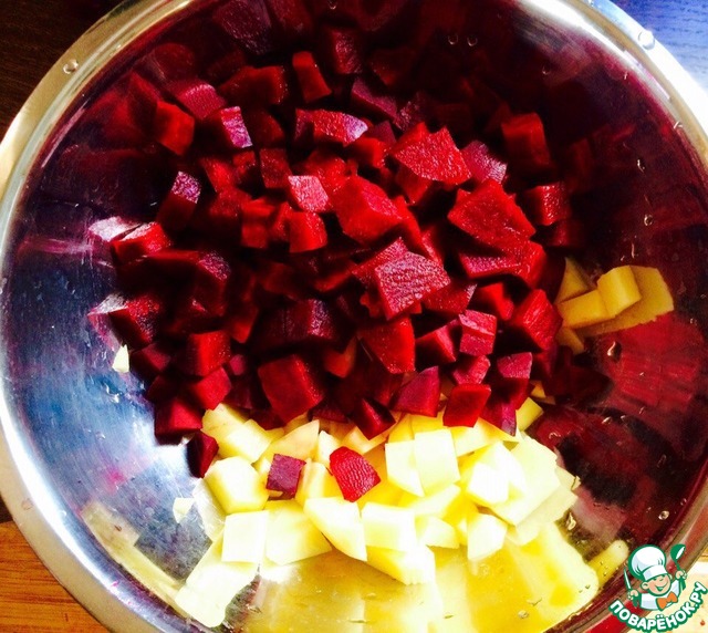 Затем добавьте свёклу и картофель. Залейте оставшейся водою.