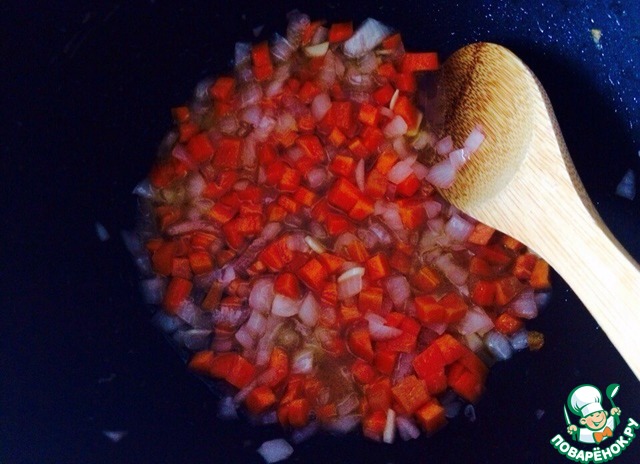 Добавьте морковь и лук. Обжаривайте буквально 1-2 минуты.