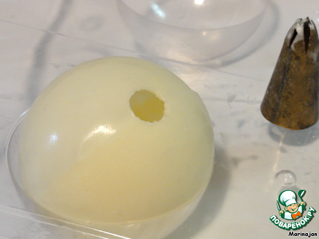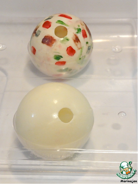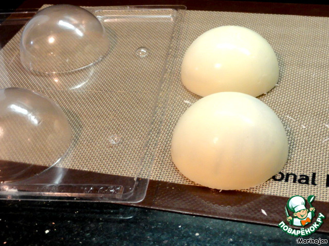 Белый шоколад можно подкрасить сухим пищевым красителем и также сделать полусферы.