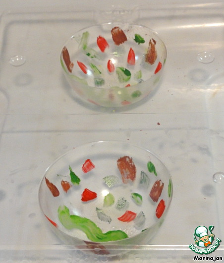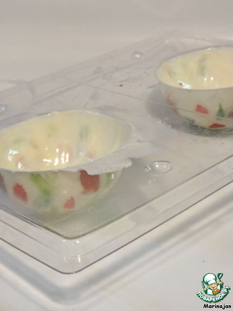 Тонким слоем смазать им форму /молд/. Поставить в морозилку на 2 мин.