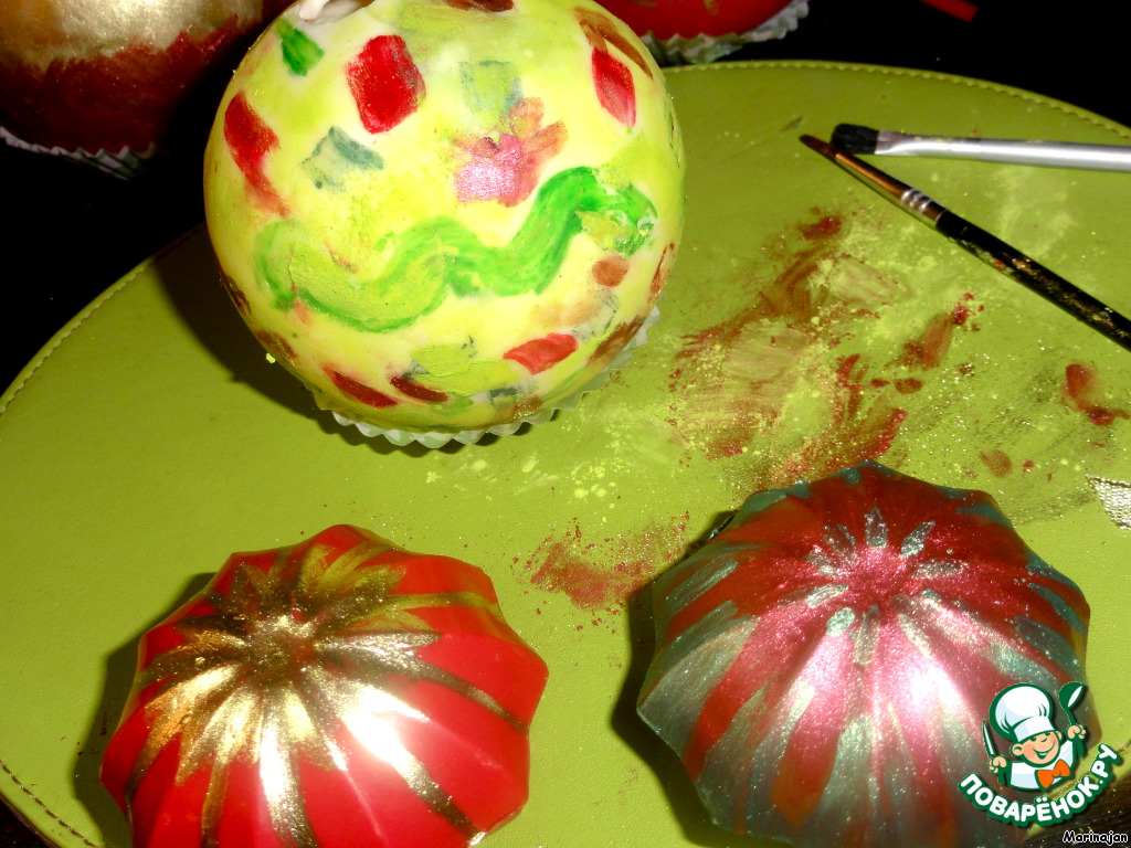 Можно нанести кисточкой на поверхности формы пищевой краситель , разведенный в спирте.