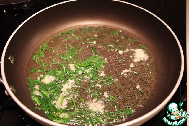 Лук и чеснок измельчить и обжарить в оливковом масле до золотистого цвета.