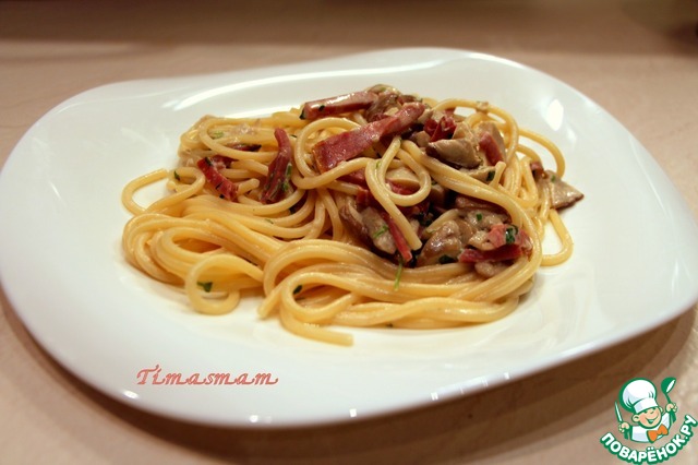 | Когда нам привезли пармскую ветчину и настоящие итальянские спагетти, купленные в Италии, сразу же возник вопрос — как это все приготовить? Никто не сомневался, что это будет именно паста!!! |