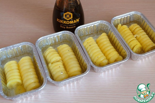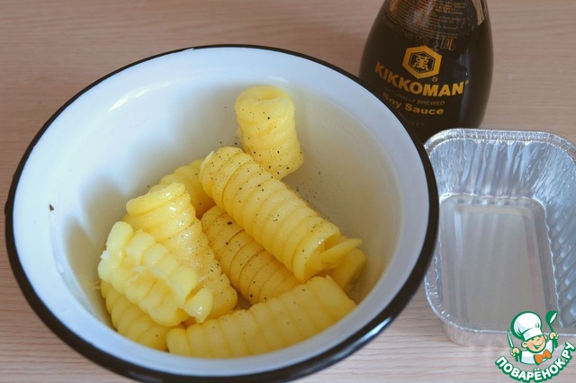 Картофель поперчить, добавить соль по вкусу, смазать растительным маслом (2 ст. ложки)