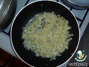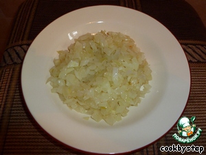 Репчатый лук мелко нарезать и обжарить на сливочном масле не медленном огне до прозрачности.