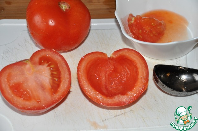 Берём спелые плотные помидоры. Из расчёта 1 помидор на 2 порции.