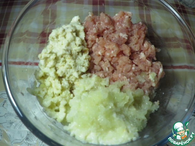 Мясо, лук, чеснок, замоченный в молоке и отжатый батон пропустить через мясорубку.