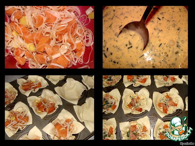заполняем рыбной начинкой и заливаем сливками (получилось по 2 ст.л. в каждую формочку).