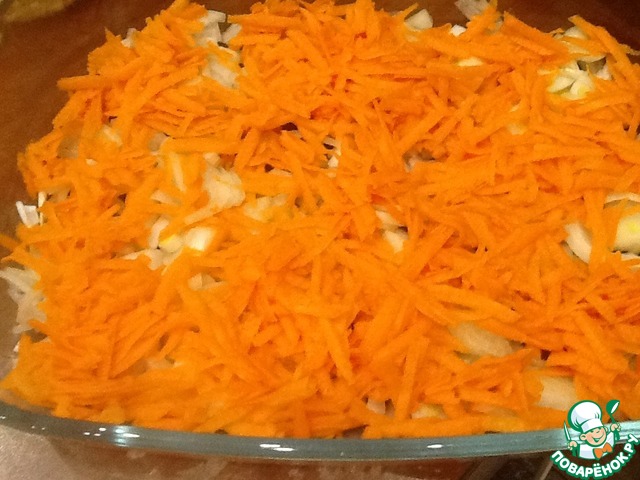 Натрем сверху морковь. Можно слегка посолить, прямо чуть-чуть.