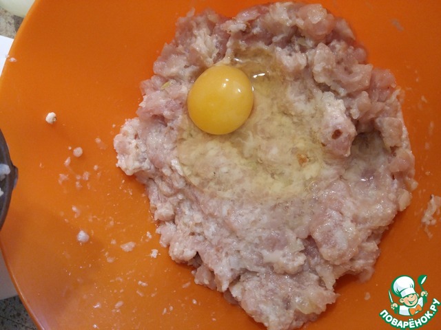 В фарш добавляем лук, яйцо, соль, перец и размоченный в молоке хлеб