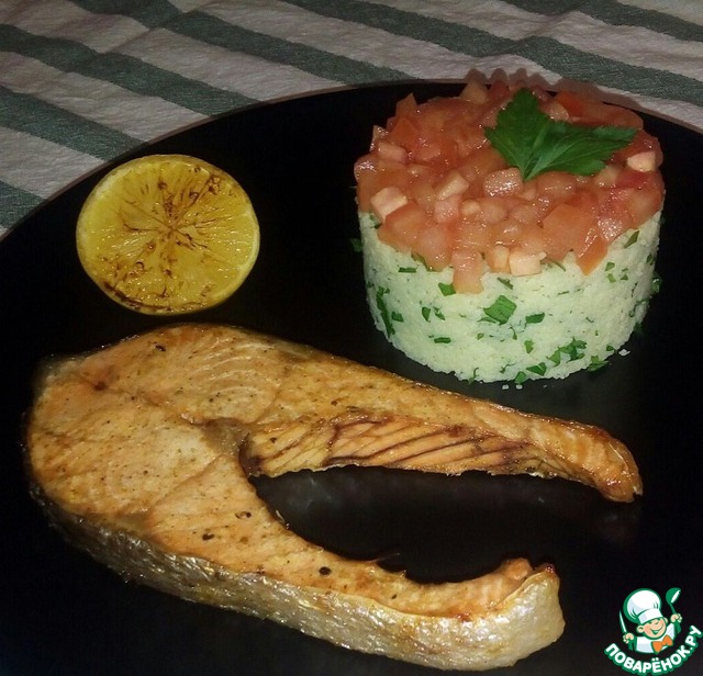 Кушать можно, как отдельное блюдо, а можно, как гарнир. Я обычно делаю кускус к рыбке. Тут у меня запечёная кета. Приятного аппетита!
