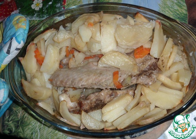 Тушеные в духовке гусиные крылышки готовы. Мама у меня на плите делала, но у нее есть специальная утятница, а у меня нет, поэтому я нашла вот такой выход.