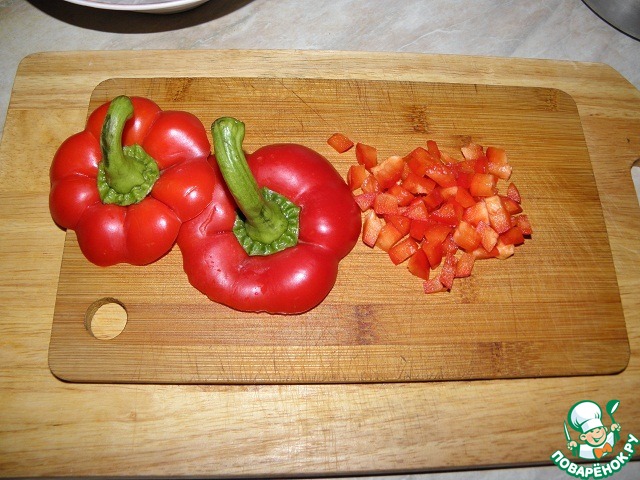 Перец вымыть, освободить от семян и перегородок, срезать шляпки (шляпки не выбрасывать)
