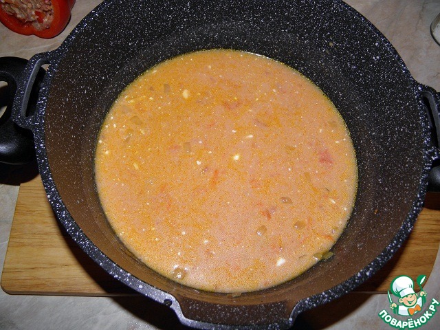 В кастрюлю или казан с подливкой поставить перцы плотно друг к другу