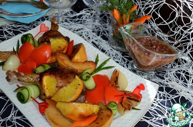Утиные ножки с фруктами
