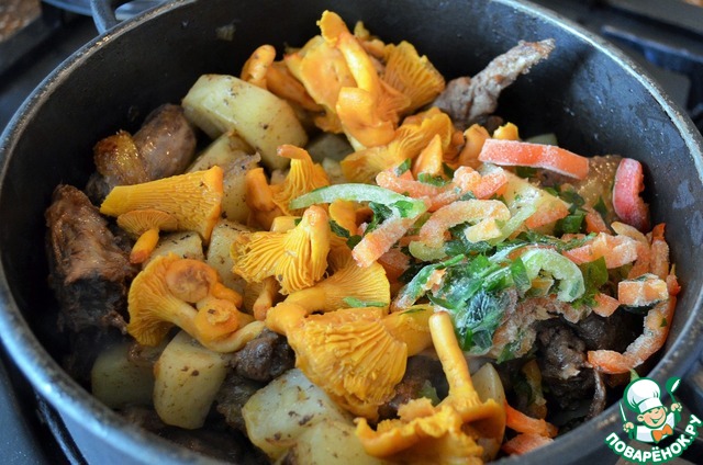 Грибы ( в моем случае, лисички) разморозить и добавить.