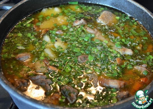 ПРИМЕЧАНИЕ : Во избежание быстрого закисания, необходимо прокипятить зелень в супе или добавлять при подаче в тарелку.