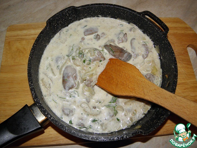 | Конечно любую печенку в меню всегда уважаю и очень люблю! Рецепт вам напомню сегодня друзья! Довольной останется ваша семья! Долго объяснять не стану, ценим в блюдах сыр, сметану! Вкусно будет обещаю! Вас на пробу приглашаю! |