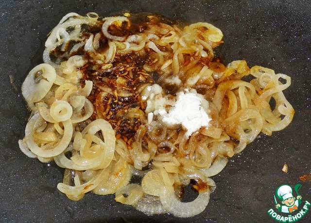 Разогреть в сковороде растительное масло, положить лук и готовить его минут 15, пока он не станет мягким, но не подрумянится.