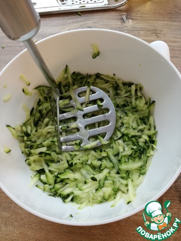 Цуккини натираем на крупной терке и обязательно выжимаем и сливаем воду. Если вы просто помяли в миске - то в конце запекайте без крышки и ему понадобится больше времени. Тогда омлет тоже получится.