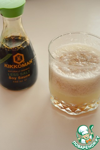 Лук нарежьте произвольно, добавьте рассол, перец, растительное масло и пробейте все блендером. Добавьте в маринад соевый соус "Киккоман"