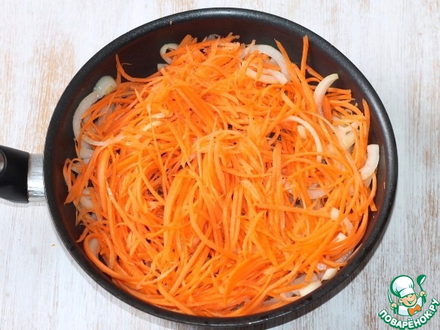 4. Затем добавляем порезанную соломкой морковь и тушим до готовности моркови.