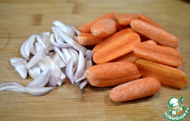 Шалот порезать перьями, морковь брусочками или кружочками, как Вам больше нравится. У меня мини-морковка и я разрезал её пополам.