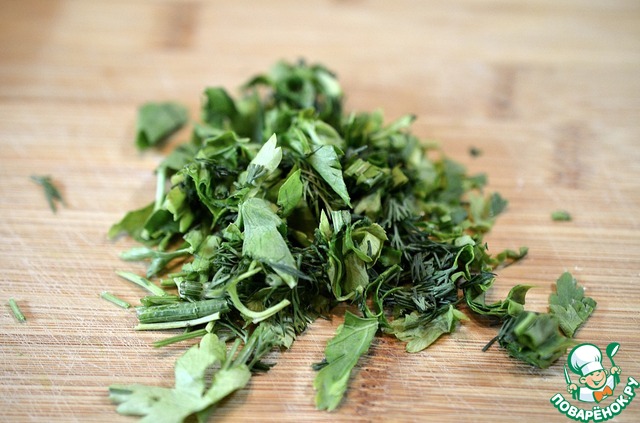 Зелень нарезать.