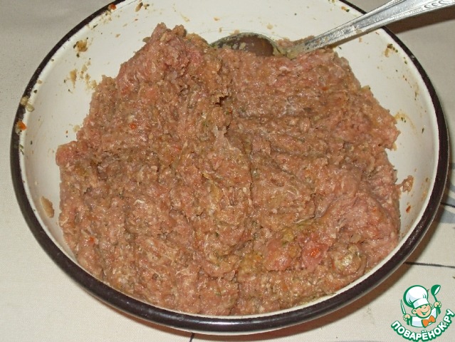 В фарш добавить соль, перец, приправу для фарша и яйцо. Хорошо вымесить и отбить. Убрать на холод на полчаса-час.