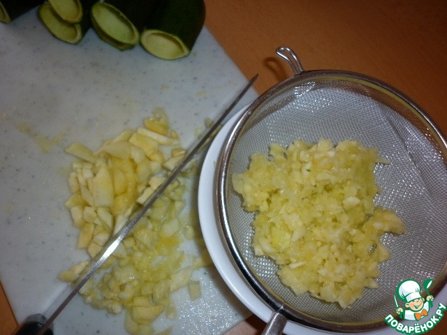 Мякоть измельчить ножом и дать стечь жидкости (оставить минут на 15-20 в ситечке).