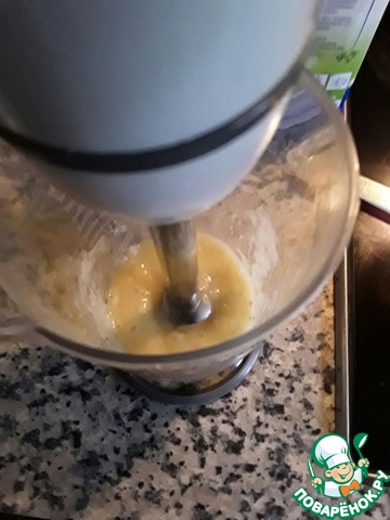 Добавляем в банан молоко и хорошо взбиваем до получения однородной консистенции.
