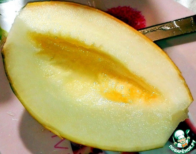 Дыню разрезала, почистила от корок и семечек.