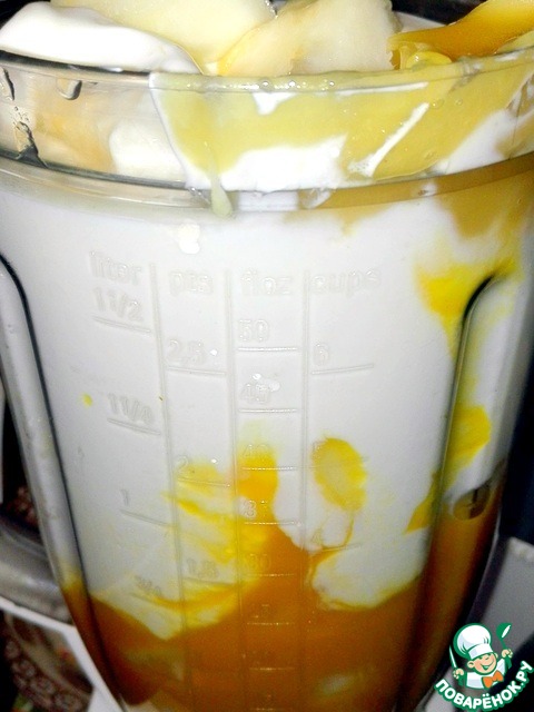 и положила в блендер. Вылила йогурт и пюре.