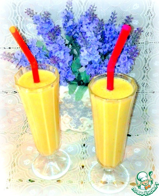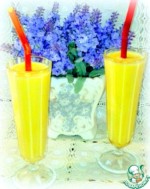 Смузи получился красивого жёлтого цвета.