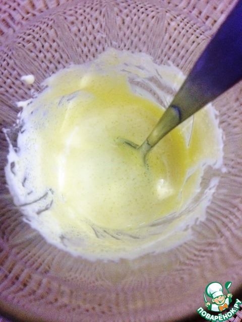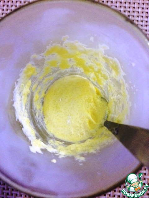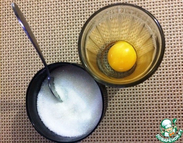 Растираем желток с сахаром до побеления массы. Занимает минуты 3-4.