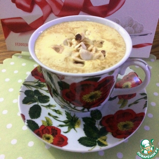 Затем ложкой набираем желтковую массу и аккуратно выкладываем сверху кофе. Посыпаем орешками и... все..