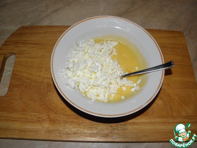Добавить к желтково-сливочной массе, посолить, все перемешать