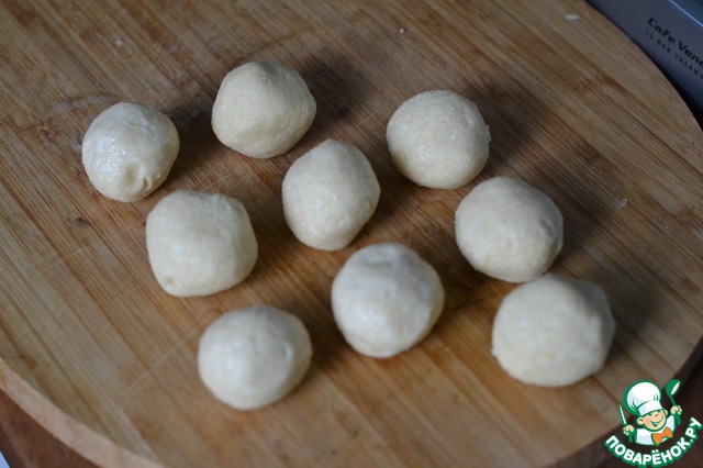 Мокрыми руками формируем из теста мячики размером с тенисный