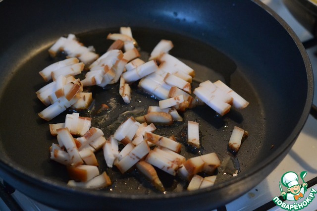 Сало нарезать на кусочки. Выжарить на сковороде.