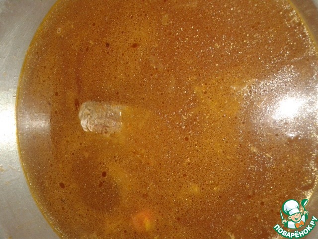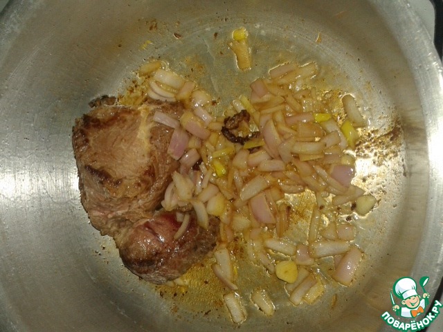 И накрываем крышкой и доводим мясо до полуготовности.. я готовила в скороварке.. потому что нужно было быстрее, а мясо верблюда готовится долго...