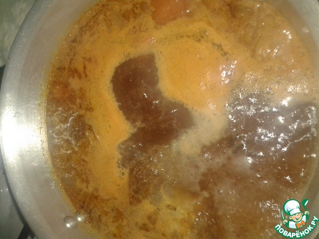 Когда это все закипит кладем соль по вкусу, черный перец и кумин (можно добавить пучок кинзы, так ароматнее)