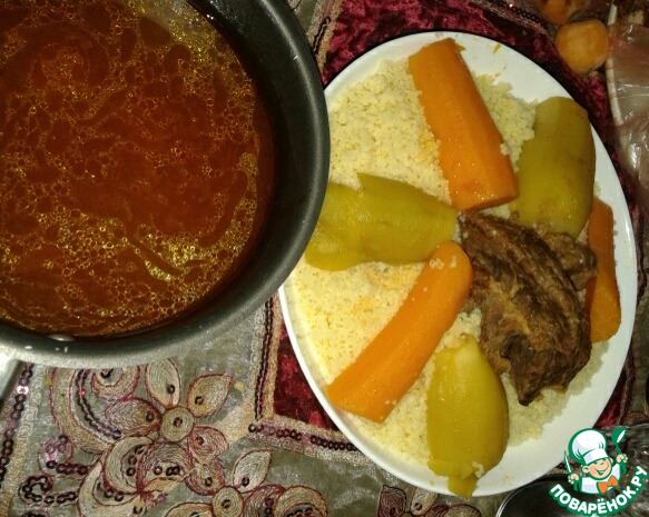 | Думаю очень многие знают кус кус! Этому рецепту научил меня мой любимый муж.. в оригинале должен быть нут и тыква.. но и без этого очень вкусно.. думаю вам понравится... |