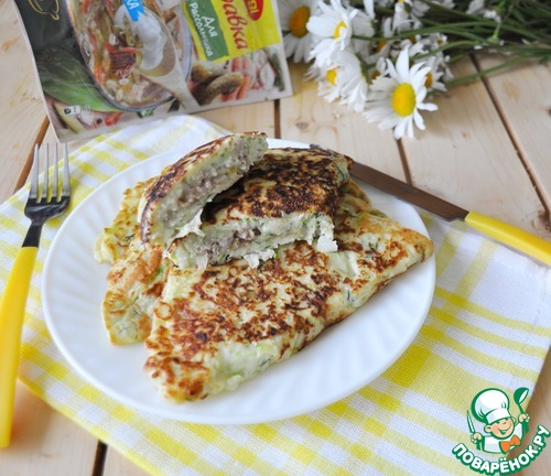 Нагреваем, обильно смазываем маслом. Наливаем тесто из цуккини половником.
