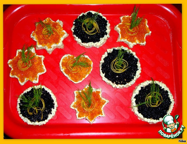 | Бутерброды с икрой на тостерной подсушенной булке с льняными семенами подойдут к кофе, к пиву или под водочку |