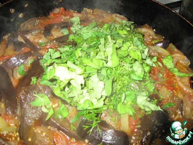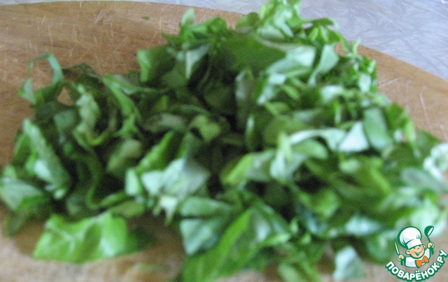 Сверху добавляем мелко порезанную зелень укропа и базилика.