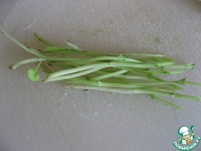 Веточки базилика освобождаем от листьев и самой нижней части, которая плотная.