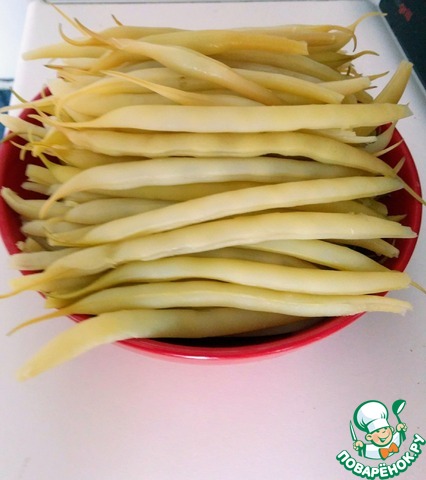 Фасоль отвариваем в подсоленной воде (на 2 литра воды я добавляю приблизительно 1 ст. л. соли). Если фасоль свежая, очищаем, обрезаем хвостики.